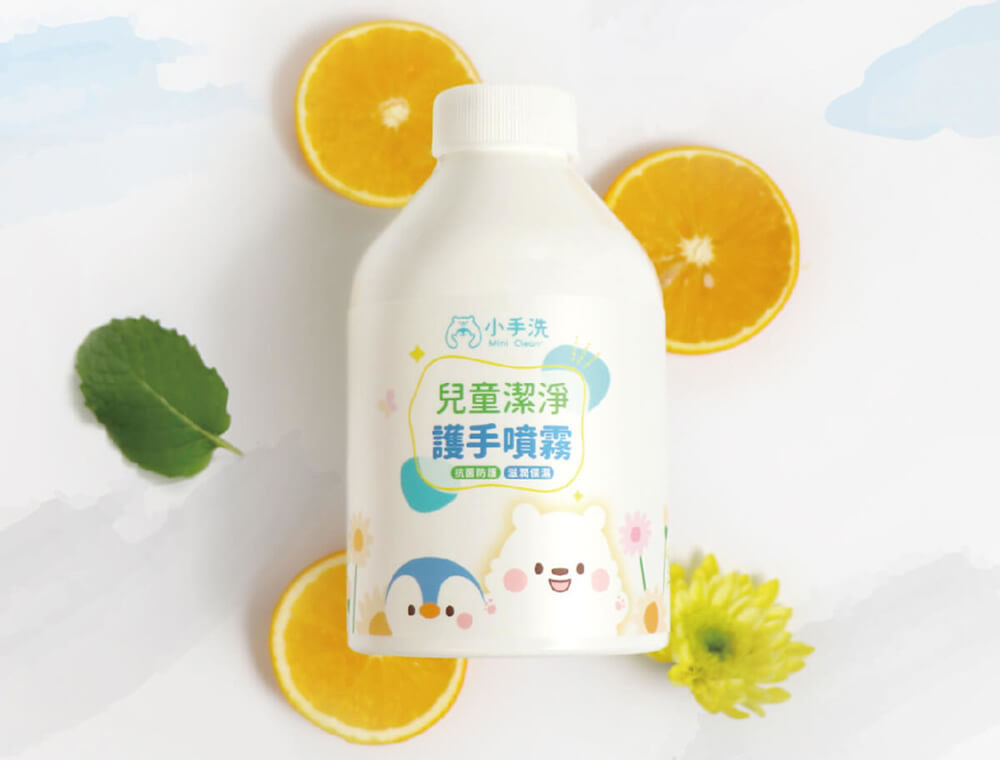 兒童抗菌護手噴霧採用雙效抗菌:甜橙皮油衛福部核准使用於肌膚之抗菌成份繖花醇