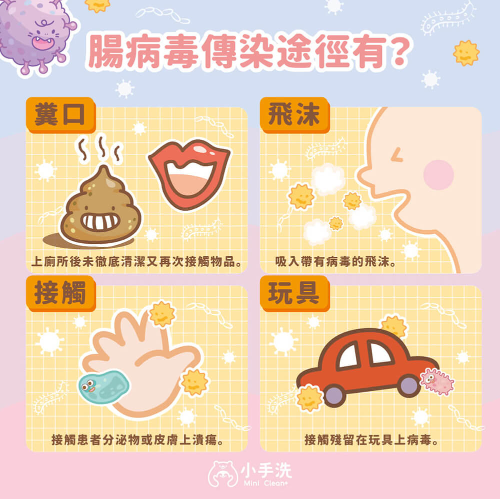 之後病毒會在腸胃道繁殖(如糞便)可透過多種方式傳播,且傳染力非常高!