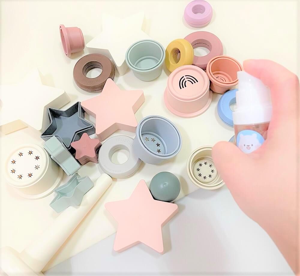 在家也能拿小手洗抗菌噴霧來消毒玩具