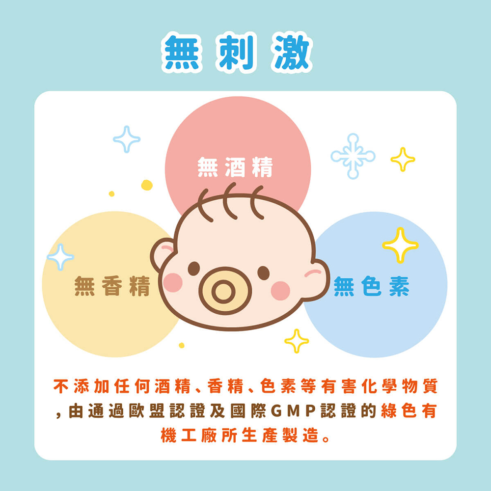 小手洗抗菌液本身不添加任何酒精、香精、色素、防腐劑等有害化學物質。