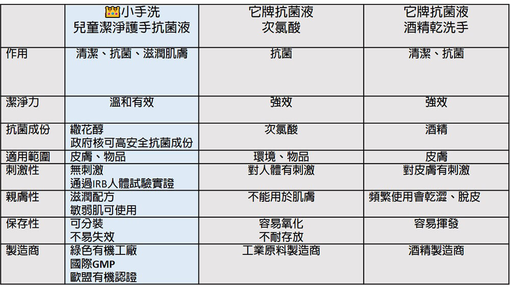 希望透過以上介紹能讓大家了解小手洗與一般抗菌產品的差別,