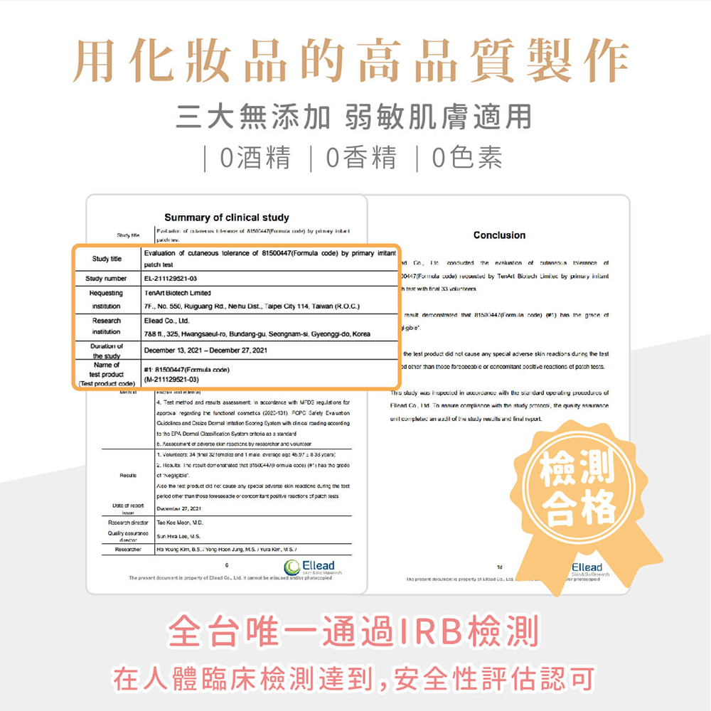 同時,小手洗也進行了專業的IRB人體肌膚檢驗📃
