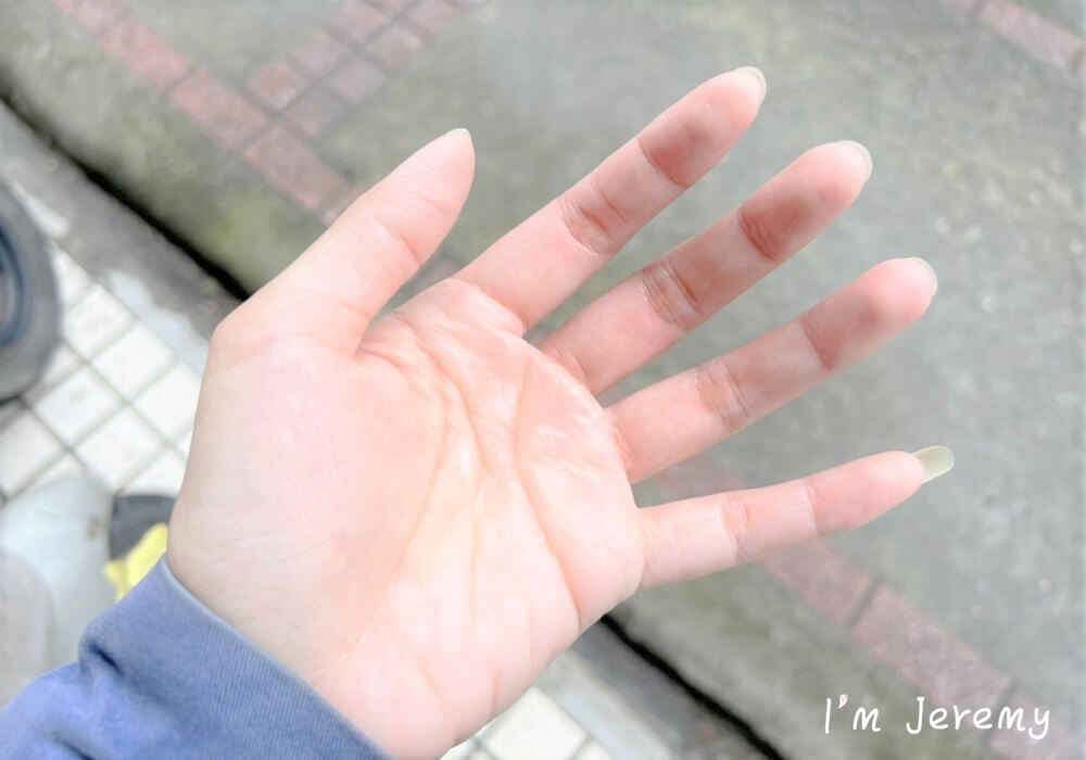 擦完後,手部肌膚不會因此摸起來感到乾燥或微黏膩,