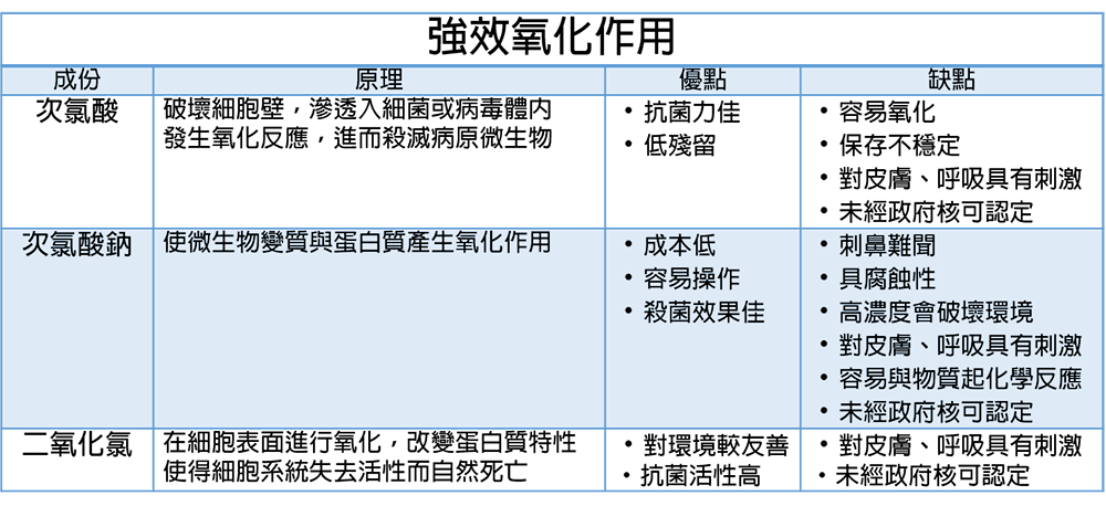 次氯酸透過氧化力來將微生物分解,導致代謝障礙而死亡,