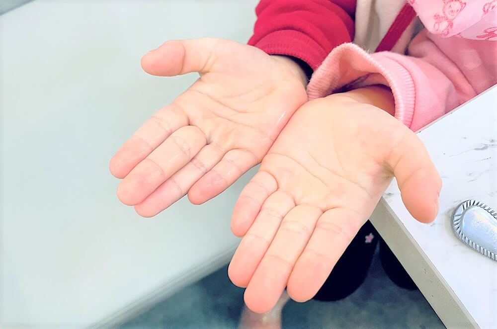 我們發現小孩子酒精用多了,手都會乾乾澀澀,有時候還會說痛痛,