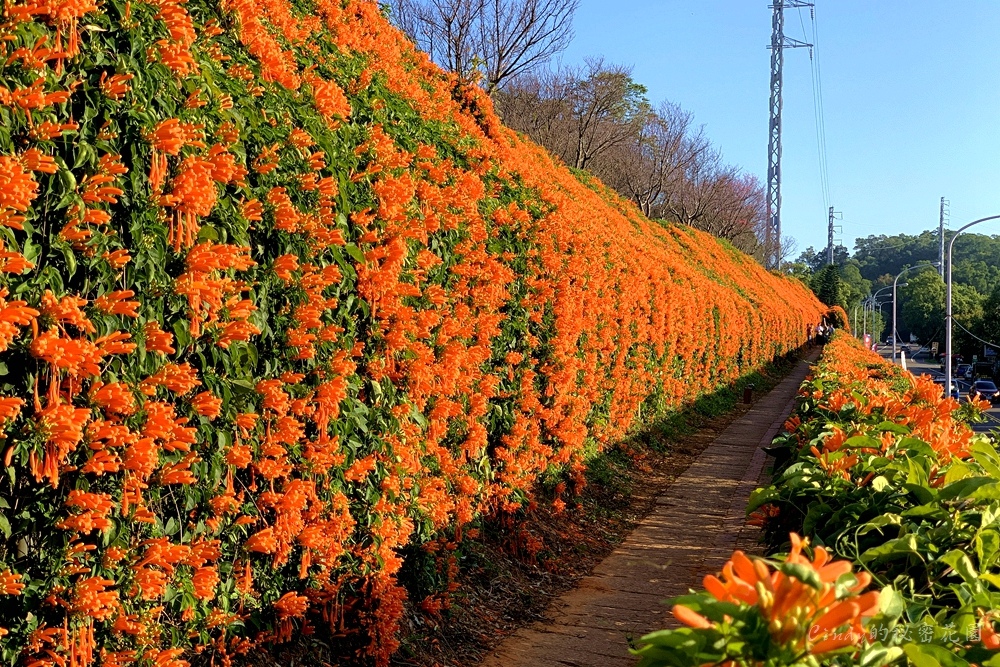 綿延數百公尺的橘色花牆真的超吸睛,不管身處在步道的哪一個位置,