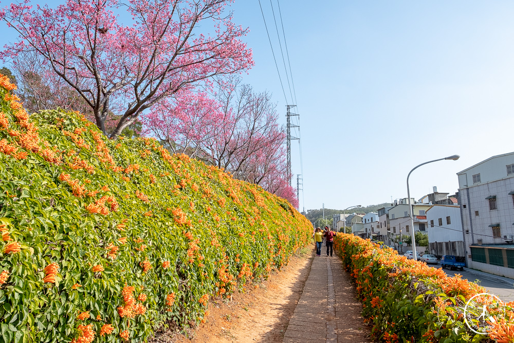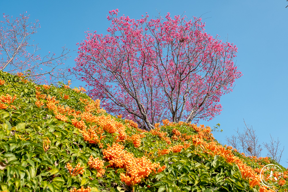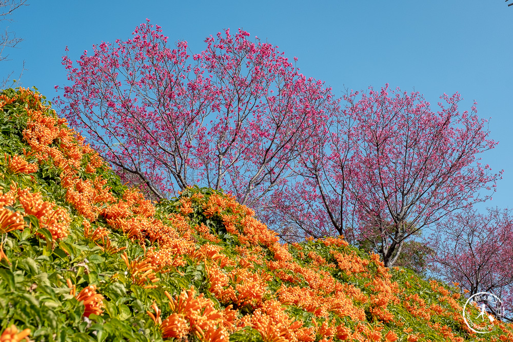 所以拔拔麻麻們若是想捕捉炮仗花與櫻花同時綻放的美景,2月中下旬左右,會是最合適的時間唷!大家不妨把握時間來看看吧!!