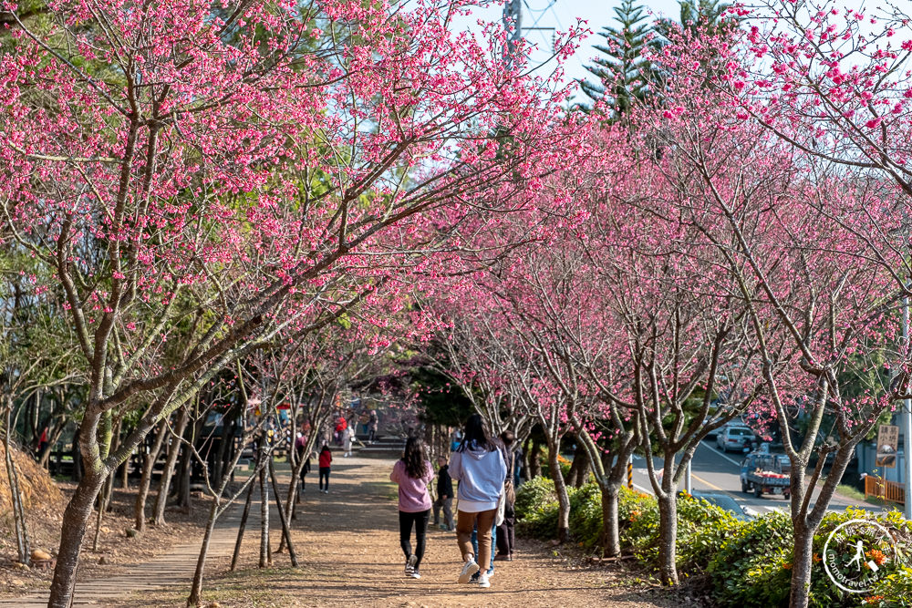 而此處的櫻花品種為山櫻花,花期通常落在2月中旬最多最美,到了3月初花況就會逐漸減少。