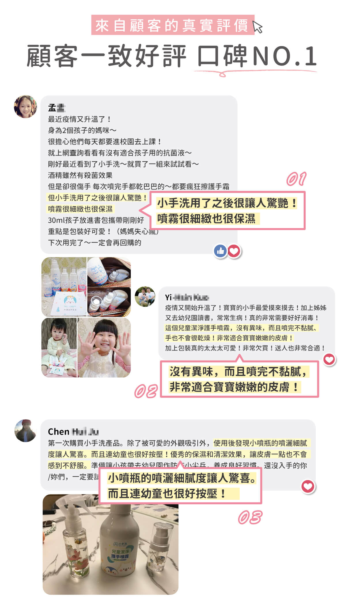 ▶ 優惠套組內容物: 兒童抗菌護手噴霧30ml 2入+80ml 2入+400ml 1入